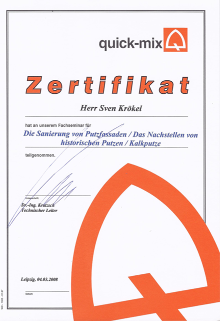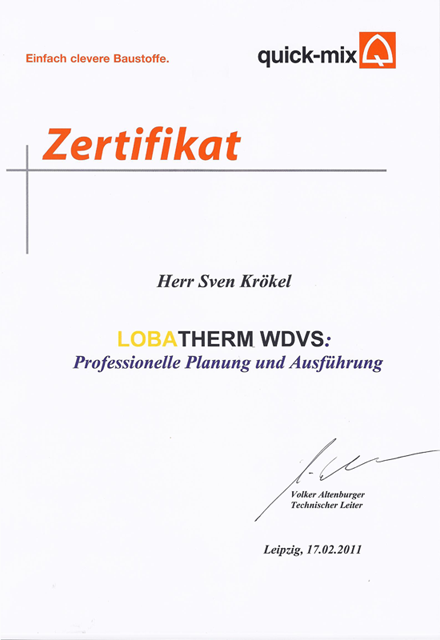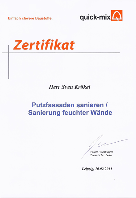 Im Zeitraum 2014 / 2015 habe ich die Meisterschule - Maurer- und Betonbaumeister am BTZ Bildungs- und Technologiezentrum der Handwerkskammer zu Leipzig mit hervorragenden Ergebnissen abgeschlossen.